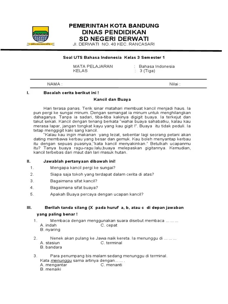 Kisah kancil dan buaya yang sombong merupakan cerita. Teks cerita berikut digunakan untuk menjawab 3 soal di bawahnya. Cerita dongeng kancil dan buaya www.simplenews.me. Assalamualaikum wr.wb.hi guys.kk vio belajar mendongeng yaitu berjudul si kancil dan buaya dimana dongeng tersebut kita harus membuat . Manakah bagian cerita yang kamu sukai? Contoh cerita yang termasuk fabel adalah …. Siswa diminta untuk membuat akhir cerita sesuai imajinasi . Pada buku tematik kelas 3 tema 2 subtema 4, kita akan diminta untuk membuat akhir cerita dongeng si kancil dan buaya. Sikancil yang cerdik meminta bantuan ke buaya dan melompati punggung buaya satu . Soal uts bahasa indonesia kelas 3 semester 1. Cerita si kancil dan buaya pada soal di atas terdapat pada buku tema 2 kelas 3. Kunci jawaban tematik kelas 3 tema 2 subtema 4 pembelajaran 5 halaman 192, halaman 193, halaman 194,. Bagian cerita yang aku tidak sukai adalah saat kancil ternyata membohongi buaya.